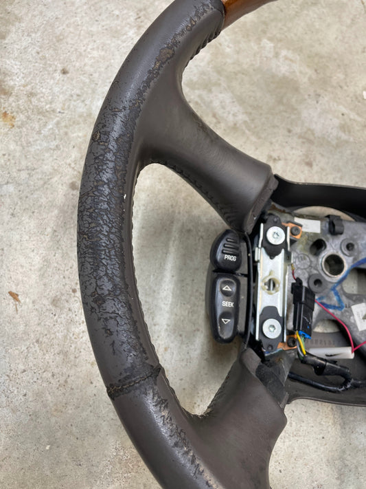 OEM Leather w/Wood Steering Wheel & Radio Controls from Escalade fits 1995 - 2005 GM Trucks