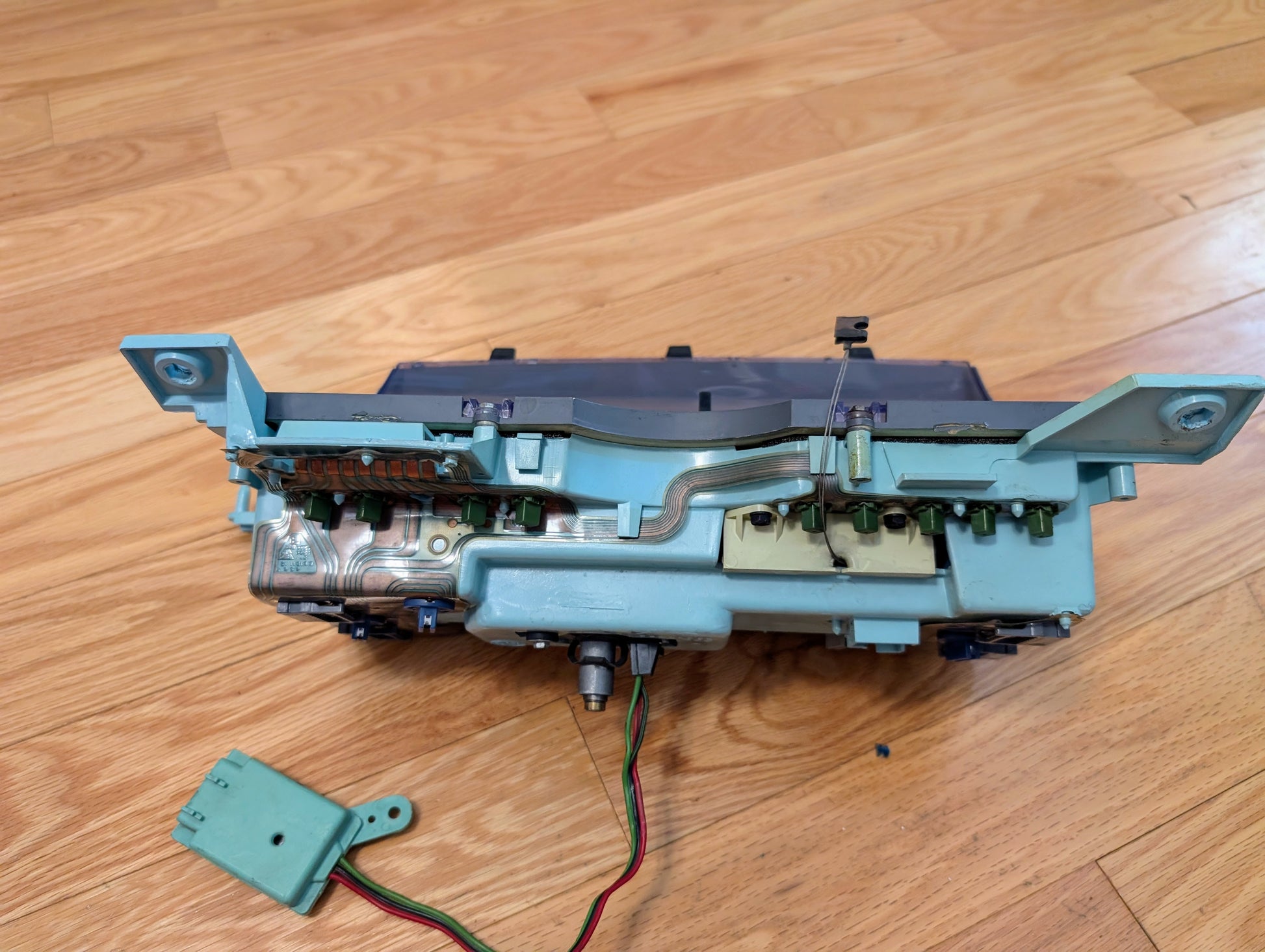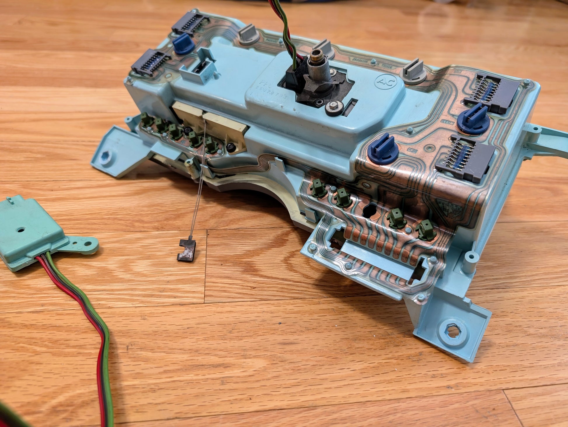 This is a very nice lower mile example. The lens is very clear with easy view of the gauges. All mounting points are intact and very solid. Trip odometer resets with the push of the button like it should and the PRNDL cable moves the needle too. The Tach module wiring was cut when it was removed from the vehicle, but there is plenty of wire left to make a repair with the included original module.